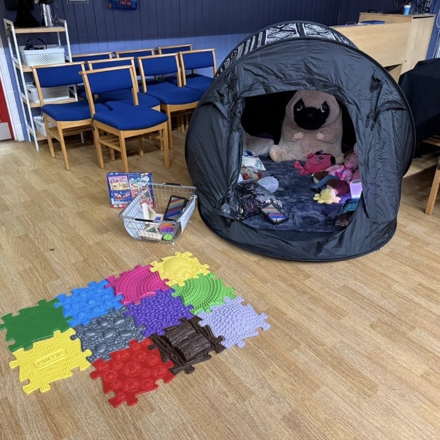 To ensure every child felt comfortable, Leanne also created a make‑shift sensory tent for those who felt overwhelmed. The quiet space was equipped with touch lamps, sequin pillows and soft lighting, offering a calming retreat and a moment to reset.